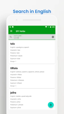 1. More than 2000 basic verbs using in SFI and daily life 2. Offline for use 3. Realtime search by any keywords in both English and Swedish 4. Easy to use. Quick to search your verb and find others 5. Free of charge. 6. For beginner in Swedish, students in SFI class and use with Rivstart textbook 7. Easy search by SAOL
