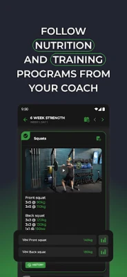 - Follow training plans and workouts set by your Coach - Share files and videos, such as form checks - Log and track training metrics over time - View your progress with detailed analytics - Manage your training schedule from anywhere - Keep in touch with your Coach using our integrated chat - Create your own programs and workouts to follow
