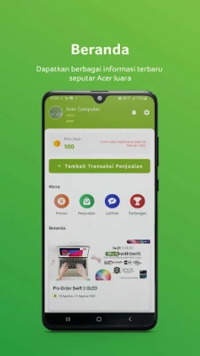Acer Indonesia terus melakukan improvement terkait perkembangan teknologi digital, saat ini kami telah menyediakan Acer App yang baru yaitu "Acer Juara". App ini dikembangkan agar Acer Indonesia dapat berkomunikasi lebih baik lagi dengan Anda sebagai partner kami. Acer Indonesia dapat mengupdate informasi mengenai product baru, product unggulan, promo menarik dan berbagai informasi penting lainnya. Selain itu kami menyediakan banyak aktifitas menarik yang bisa diikuti, point siap menanti Anda jika anda menyelesaikan aktifias tersebut. Point yang terkumpul dapat ditukarkan dengan reward yang sudah disiapkan. Segera install & raih point nya !