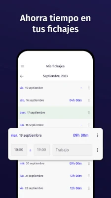Puedes fichar y registrar tus horas o turnos de trabajo, vacaciones, horas extras y situaciones especiales.