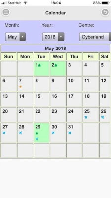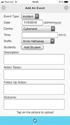 Functions for teachers to take attendance, apply for leave, enter centre logs, upload files and receive announcements.