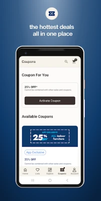 • Shop for furniture and decor with app-exclusive deals and discounts.