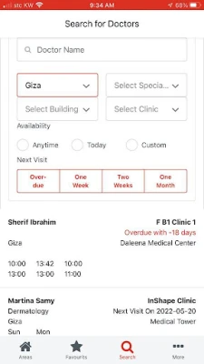 - Plan your visits by searching for doctors by areas, clinics, availability, and next visit date.