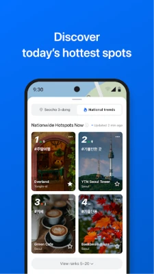 Helps you find new places nationwide and nearby. Enjoy real-time rankings, recommendation feeds, trending spots, bookmarked lists, and coupon offers.