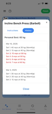 Track your personal records and exercise history with highlights